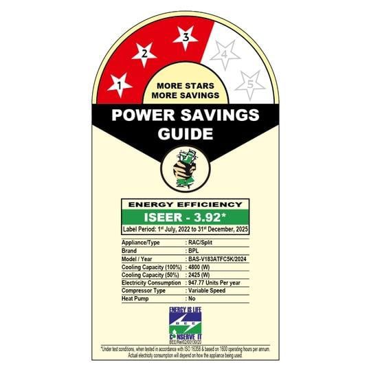 BPL INVERTER SPLIT AC,1.5 Ton 3Star 4800 Watt Cooling Capacity