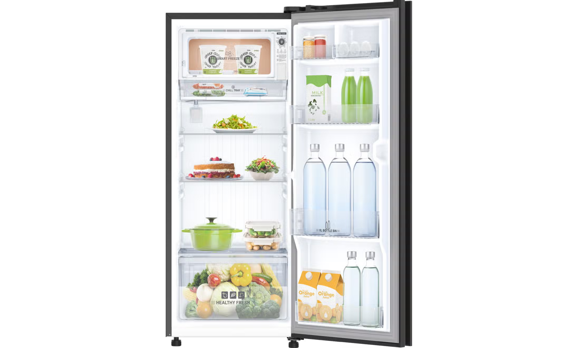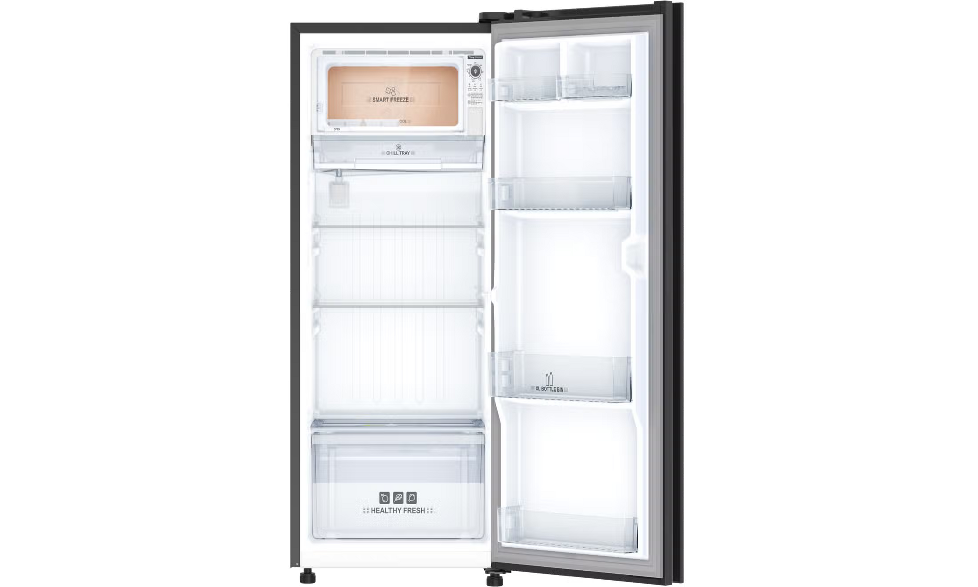 This 187-litre direct cool refrigerator features a premium glass door finish and advanced cooling technology, designed to keep your food fresh and your kitchen elegant.