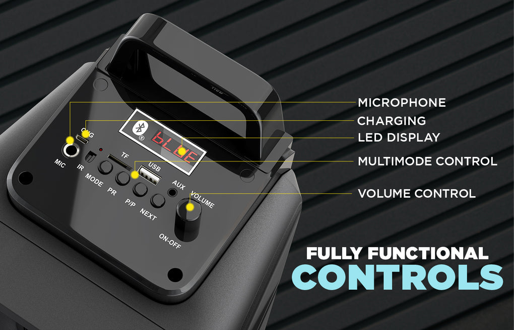 Enjoy deep bass, crisp vocals, and immersive sound, all powered by a 100-watt output ideal for both indoor and outdoor use.
