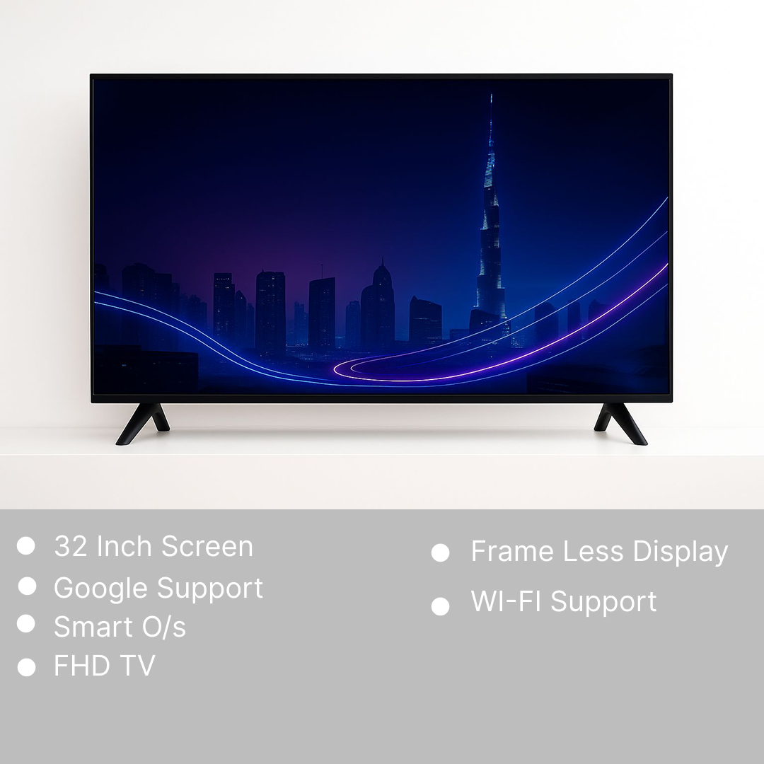 The R Infinity TV Fully Smart + Android offers a premium viewing experience with its Full HD resolution and stunning IPS display. With 1 Year piece to piece guaranty ample space for apps and content. The TV comes with an integrated sound bar for enhanced audio quality. A frameless design for a sleek, modern look. With full Google support, you have access to a wide range of apps and features to enhance your entertainment experience